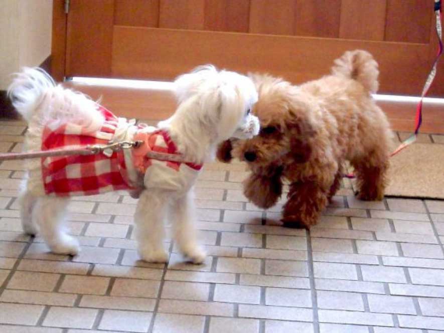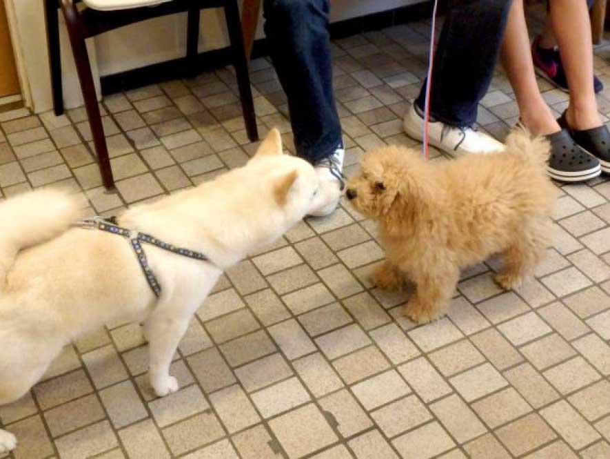 ワンちゃんは、社会化期(生後3週齢~12週齢)にどれだけ他の子や家族以外の人と接触したか、外の世界と接触したかでその後の成長が大きく左右されます。この時期にいい経験を積ませてあげ、適切なしつけを行うことで、他の子となかよくできる子、家族以外の人にも可愛がられる子に育ちます。パピークラスは甘噛みやトイレトレーニングのお悩みなど、この時期特有のお困りごとも含め、ワンちゃんと飼い主様が一緒に学べる絶好の機会です。