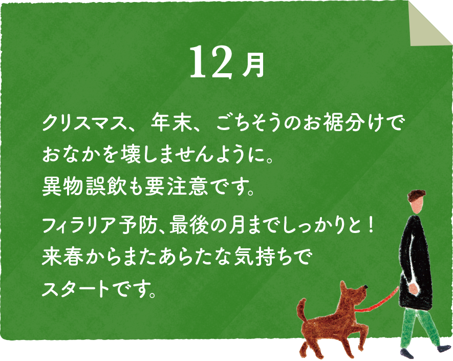 | ー | ◎ 犬レプトスピラ感染症(イクテロヘモラジー型) | 野生動物の尿や尿に汚染された土壌から感染、肝臓や腎臓に重篤な障害、死に至ることも |